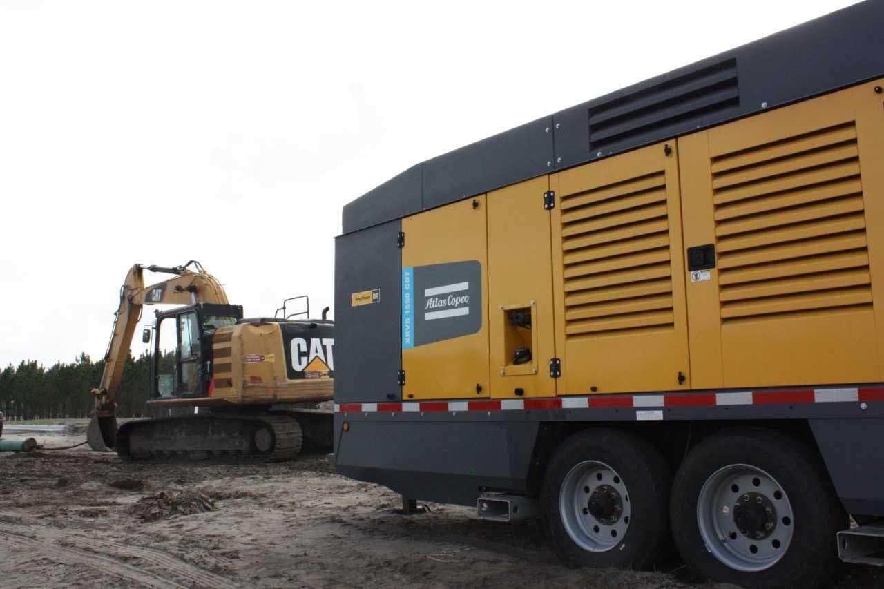 Reliable portable diesel air compressors, perfect for construction applications, in sizes ranging from 125-1900 CFM, 80-200 PSI, are available from Ring Power. Our portable air compressors are aftercooled & filtered "Instrument Quality Air" to 0.01 micron rating.